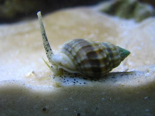Hardy snail, burrows into the sand and hides.